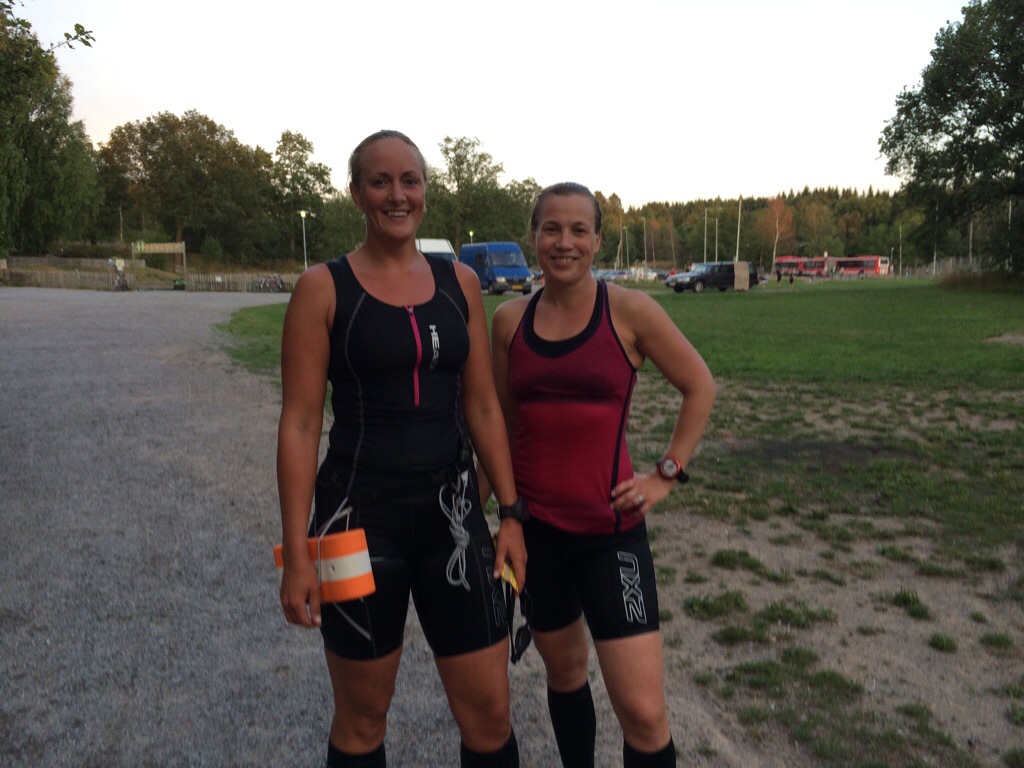 Resten av löpningen gick okej. Vi sprang lite fel på ett ställe men det ordnade snabbt upp sig. Löpningen kändes dryg och lång. Under denna sträcka var det dessutom en obligatorisk simpassage och det var en chockartad upplevelse att försöka crawla med kläder och utan brillor. Galet jobbigt!