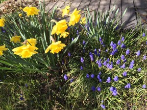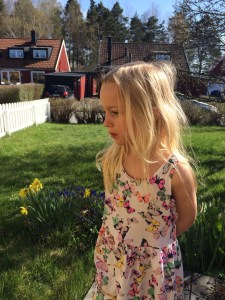 Sedan en sådan sak som att vårsolen skiner här i Stockholm och att jag fick dra på mig trädgårdshandskarna och beskära rosbuskarna. Sådant gör mig glad. Och att få sitta i solen med en kopp kaffe och bara mysa medan Wilja springer runt barfota och plockar blommor.