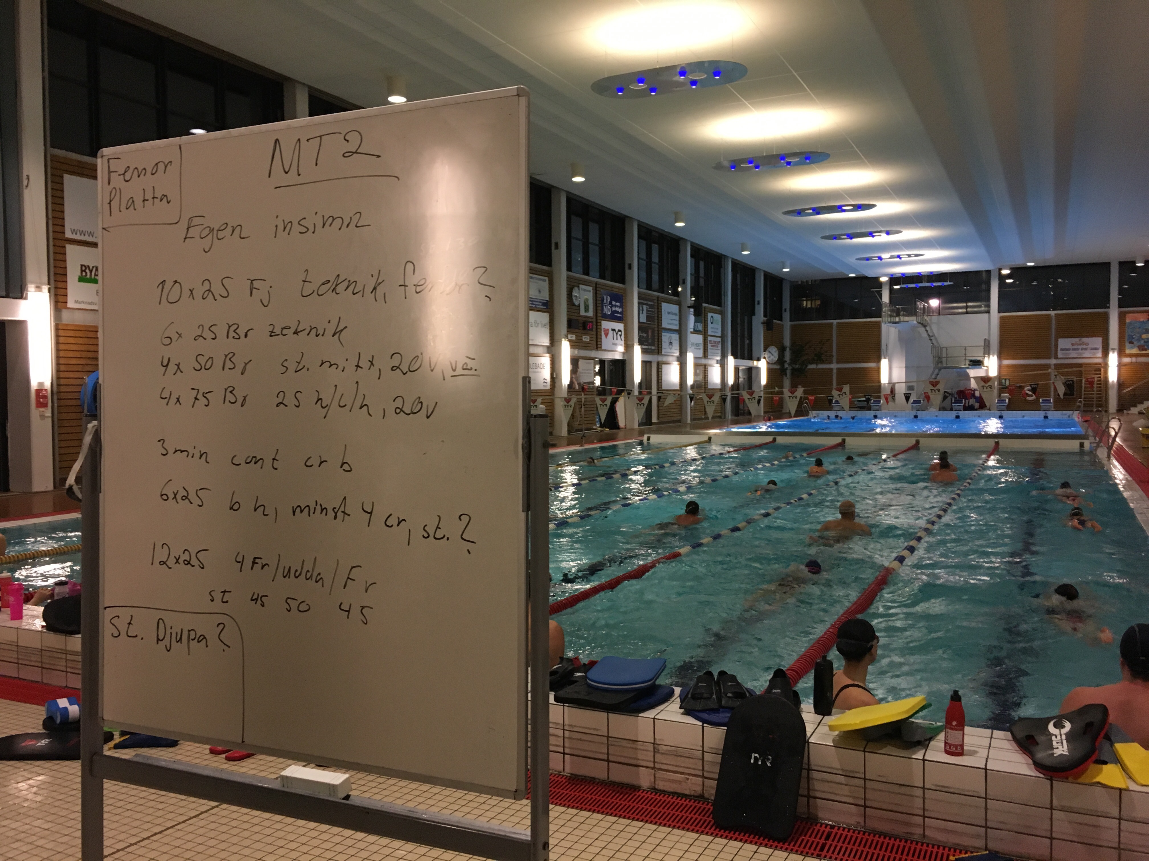 Vips så sprang vi på tjejerna från England igen. De var ruggigt starka simmare och den ena var snabb som tusan och låg hela tiden hundra meter före den andra tjejen. Jag hyste fortfarande lite hopp om att trots allt klara cut offen och när vår trogna hejaklack dök upp fick vi reda på att vi hade sprungit in tid och att det faktiskt fanns en liten chans att ändå klara det om vi la på ett kol i simningen och den 375 metersstigning som väntade.