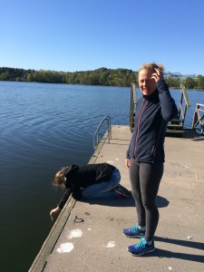 Jag messade Martin för att beklaga mig när det var 3,5 km kvar till målet. Han svarade att det var underbart att gå i det fina vädret och jag fick kraft av att ha fått gnälla lite. Började återigen springa men fick varva med lite gång någon gång eller två. Vid 1 km kvar så gick jag ikapp en tjej som powerwalkade och vi tog ett gemensamt beslut om att springa i mål. Det blev min snabbaste kilometer och alla dumma tankar om min egen uselhet var som bortblåsta.