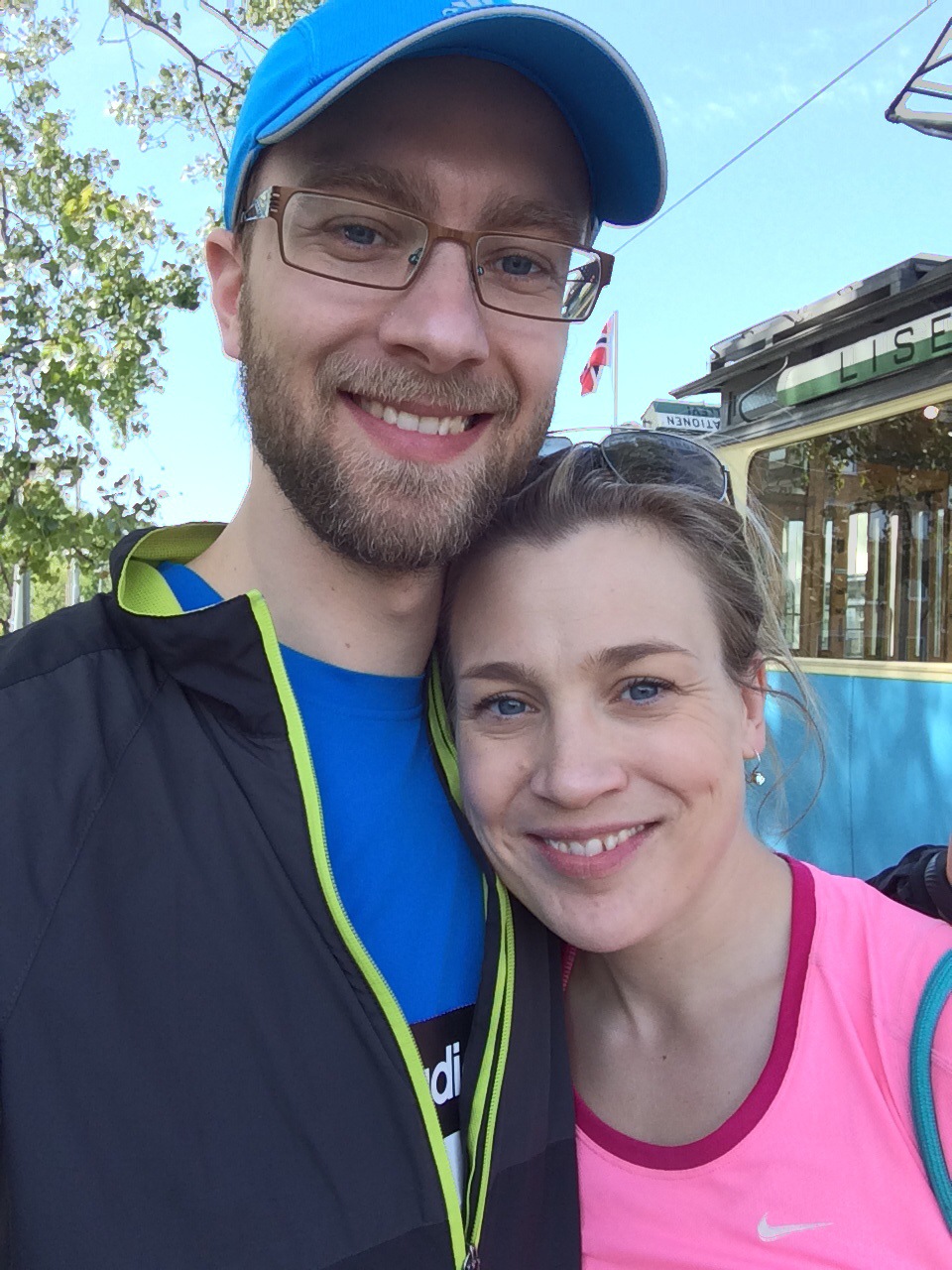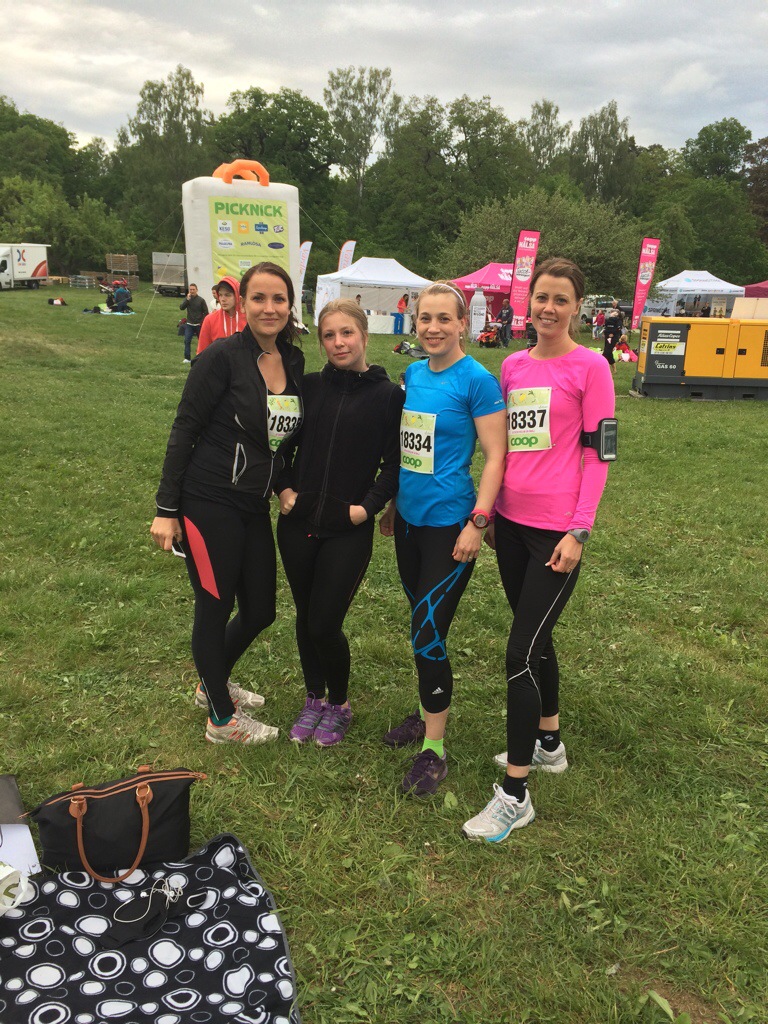 Well, såhär i efterhand kan jag sammanfatta det som att det inte var en vinnande strategi. Min puls som låg högt redan på morgonkvisten pep iväg upp mot 196 slag och där låg jag i 14 km. Jag kände mig varm och jag försökte sänka tempot men klockan visade stadigt 5:35. Kanske berodde det på alla runt omkring. Det gick väldigt snabbt och det kändes som att folk susade förbi och att jag knappt hade styrfart. Vid Västerbron så stod fina Annika och hejade och det bar mig hela vägen över bron. Upp mot Odenplan var det tufft men jag visste att det väntade vätska och nedförsbacke så jag körde mantrat ”snart vatten, snart nedför”. När jag väl passerat Sveavägen och svängt in på Birger Jarlsgatan grät jag av panik. Jag fick inte ordentligt med luft utan kippade efter andan och pulsen vägrade gå ned trots att jag gick. Ringde Martin och grät och försökte få luft. Han peppade och sa att jag skulle släppa alla tids- och prestationskrav och se det som ett långpass. han var även på väg in och lovade att leta upp mig så fort som möjligt.