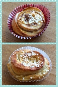 Jag tycker bäst om vaniljbullar men eftersom det doftar ljuvligt när man gräddar kanelbullar så brukar jag göra en liten mängd kanelisar också.